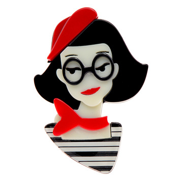 Broche de acetato acrílico hecho a mano para chica con gafas, ropa de dibujos animados para mujer, joyería hecha a mano, venta al por mayor, venta al por mayor de 2017