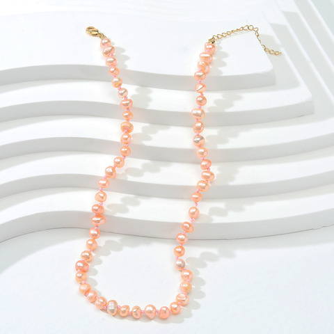 Collar de cuentas de perlas rosas naturales para mujer, joyería de cuello ajustable, venta al por mayor, hecho a mano, venta al por mayor, collar de moda