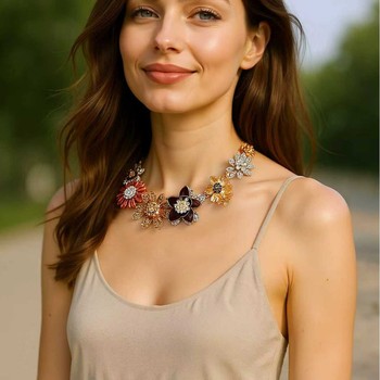 YL-155ขายส่งผู้หญิงเครื่องประดับคอคริสตัลปูขนาดเล็กสร้อยคอสั้นเรียบง่ายโช้คเกอร์โลหะดอกไม้ขนาดใหญ่